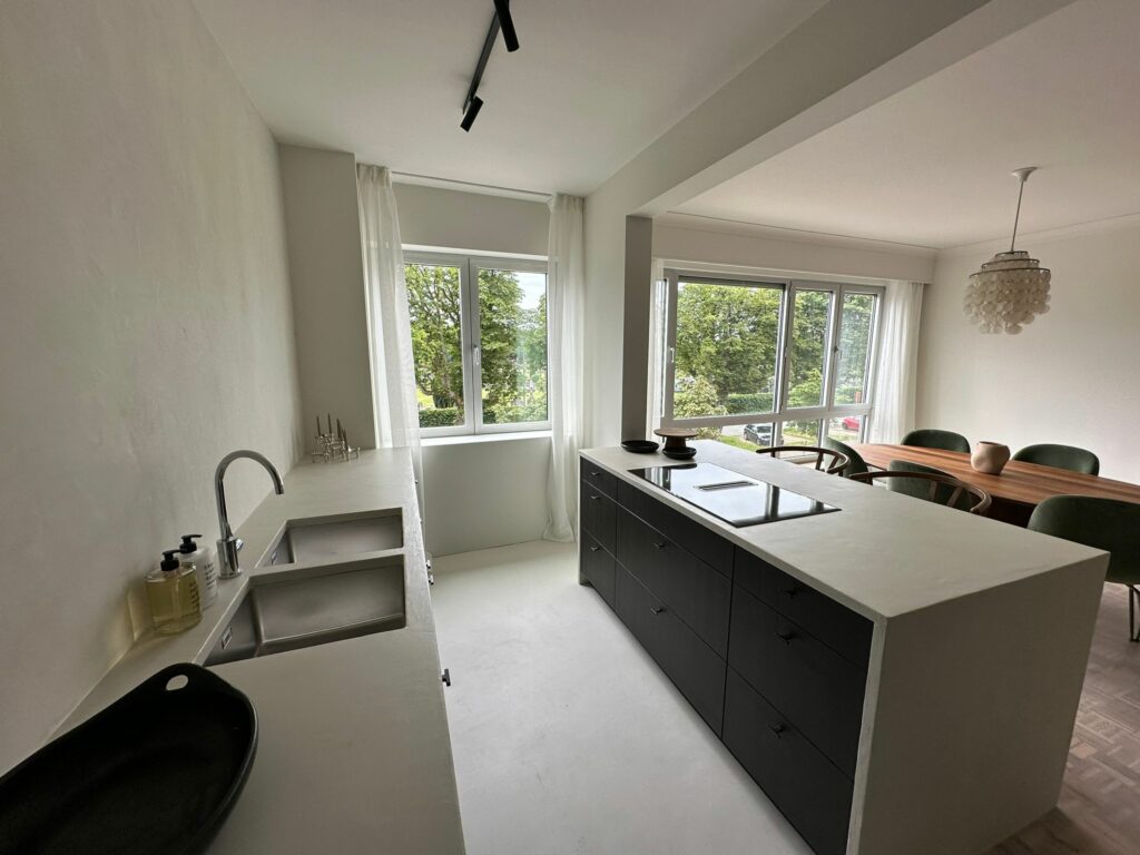 Alle muren zijn bezet en geschilderd voor een frisse uitstraling. De vloeren zijn opgeschuurd, waardoor ze weer als nieuw zijn. Mortex is aangebracht in de gang, keuken en badkamer voor een stijlvolle en duurzame afwerking.